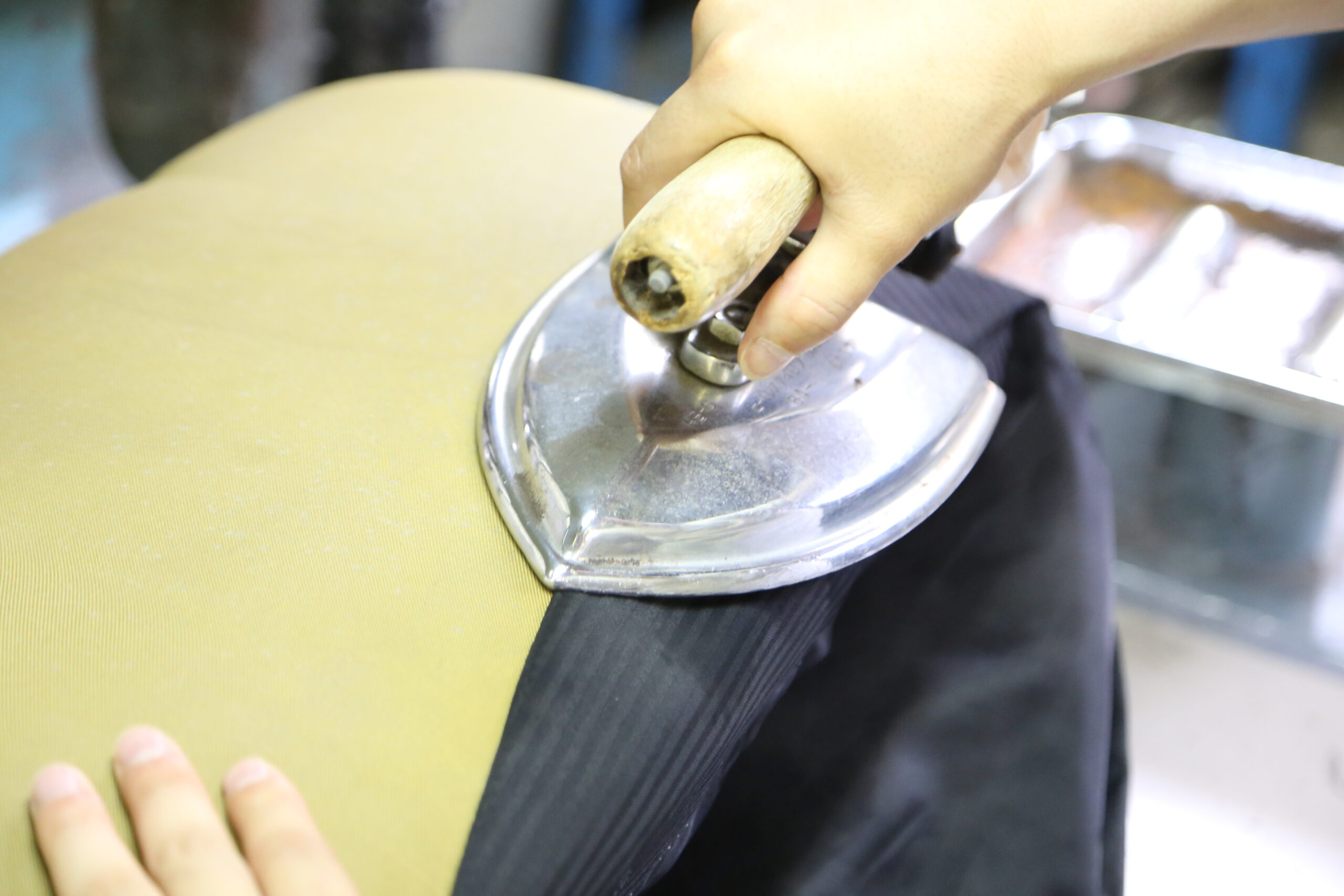 機械では難しい細かい部分も、一点ずつ丁寧にアイロンで手仕上げします。